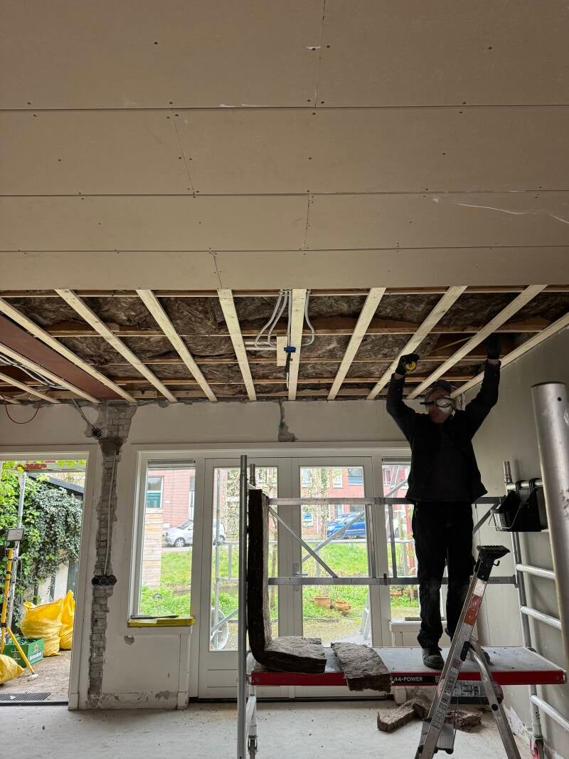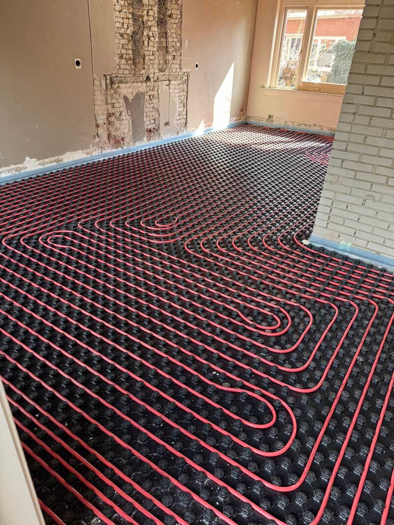 Tijdens de werkzaamheden hebben wij de oude, rotte houten balken verwijderd en vervangen door schuimbeton. Dit zorgt voor een solide, onderhoudsvrije en goed geïsoleerde basis van de vloer. De gehele woning is daarnaast voorzien van vloerverwarming met lage temperatuur verwarming, wat niet alleen zorgt voor extra comfort maar ook voor een beter energielabel.