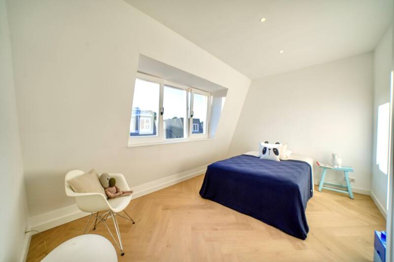 De woning beschikt over vier ruime slaapkamers, twee moderne badkamers en drie toiletten. Op de bovenste verdieping is dankzij de dakopbouw extra leefruimte en toegang tot een royaal dakterras. De afwerking is strak en hoogwaardig, met oog voor detail en comfort.
