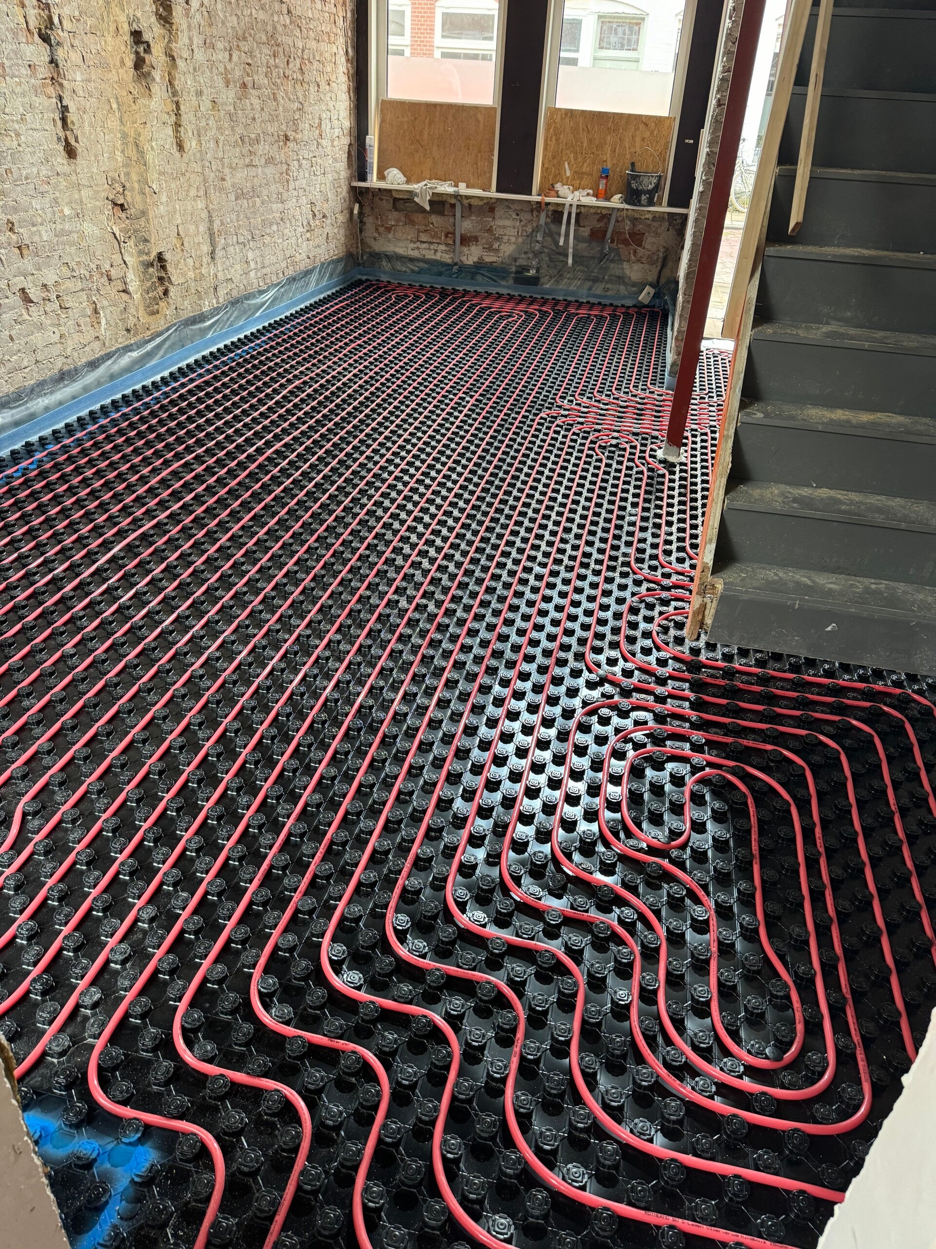 Na het uitharden van het schuimbeton plaatsen wij de vloerverwarming. Afhankelijk van de situatie en de gewenste eindvloer gebruiken we verschillende systemen, zoals krimpnetten, noppenplaten. Hierdoor kunnen wij de vloerverwarming perfect afstemmen op uw woning in Haarlem.